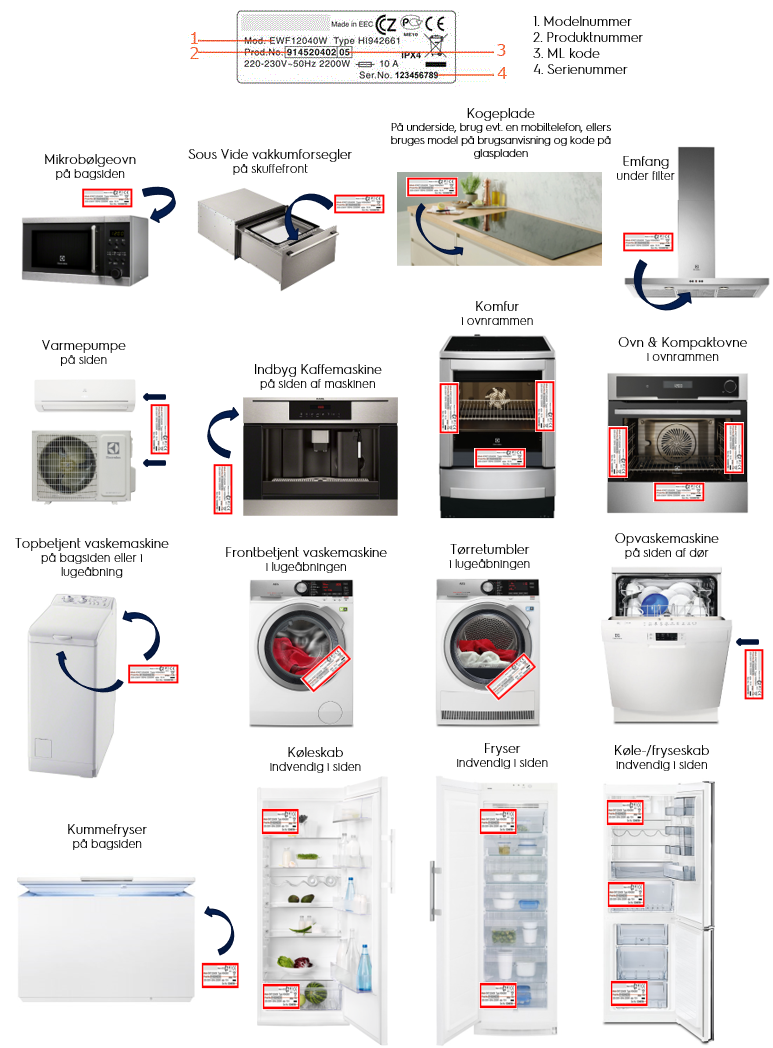- Hvor finner jeg typeskiltet/klistremerket med modell, PNC, ML-kode og serienummer på produktet?