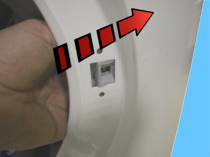 Før du strammer til skruene for å sikre dørens sikkerhetslås til frontpanelet, må du forsikre deg om at flensen er riktig plassert på utsiden som indikert av pilene.