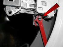 Forsikre deg om at den lille stangen er riktig plassert i forhold til dørens sikkerhetslås (se bildet øverst på siden).
