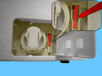 Ikke trekk den ut for mye, ellers kommer den lille stangen ut av setet i filterhuset, som beskrevet nedenfor.
